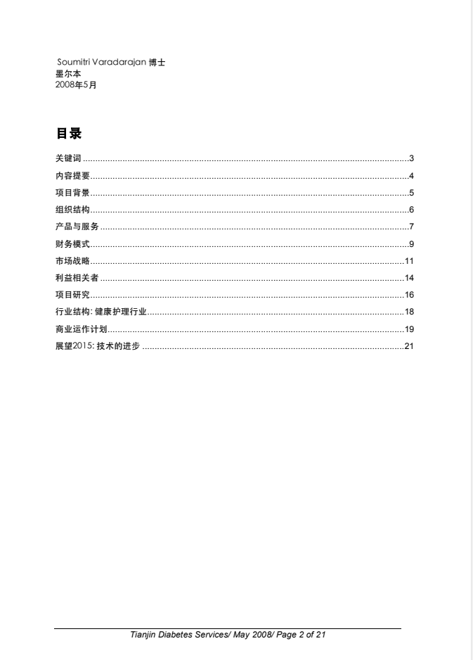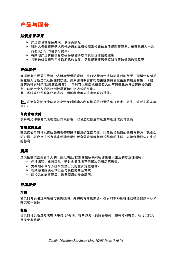 糖尿病服务公司商业计划书
