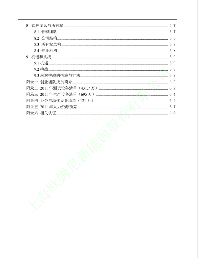 上海欧姆尼新能源股份有限公司商业计划书