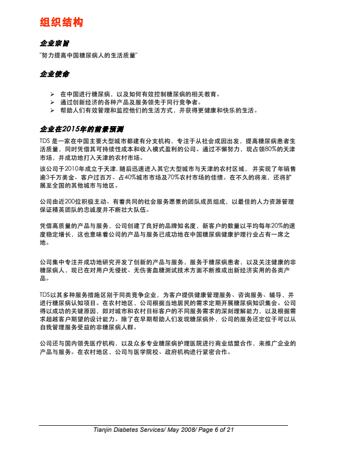 糖尿病服务公司商业计划书